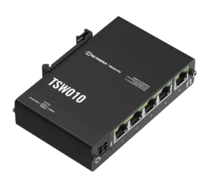 A Teltonika TSW010 egy nagyon egyszerű, nem menedzselhető, DIN-sínre szerelhető, kompakt ipari switch. 5 Ethernet porttal rendelkezik, amelyek akár 100 Mbps-t támogatnak.